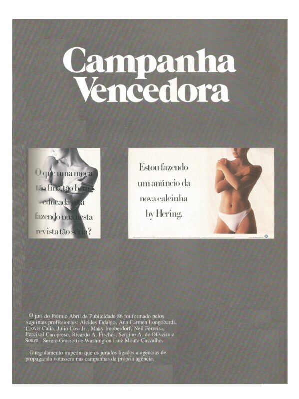 ⦁ 1° Lugar – “Calcinha e Cuecas-“Peixinhos” Hering (consecutivo) Voto Popular