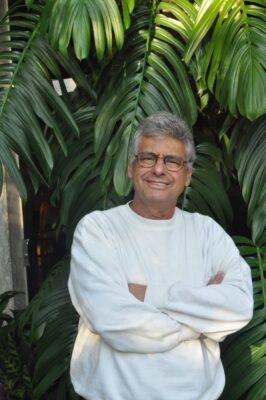 Abraçando um chimpanzé, como jurado no programa de Flávio Cavalcanti.