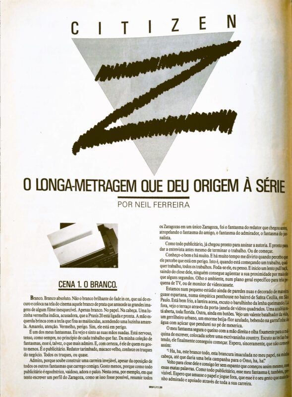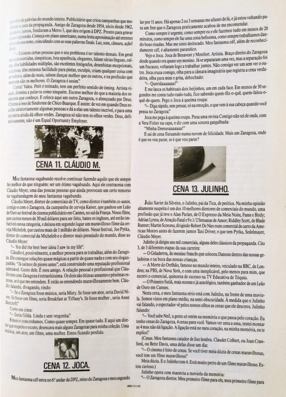 Nesse comercial de cinco minutos, depois dividido em cinco capítulos independentes de um minuto cada, havia sido criado com esse objetivo, eu e o diretor tentamos e conseguimos nos aproveitar do amor que o Zaragoza sempre dedicou aos longas- metragens, que mais tarde viria a criar, produzir e dirigir. A história já começava com uma tremenda ousadia do anunciante, Souza Cruz, que aprovou a ideia da DPZ, saída da cabeça do Zaragoza e deste seu parceiro, de pela primeira vez ocupar um intervalo inteiro da TV Globo.